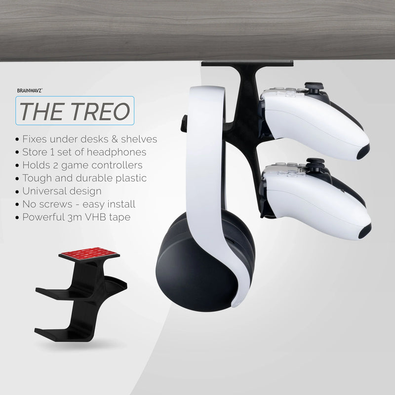 Hang all your controllers and headphones neatly and conveniently out of the way, preventing damage and keeping your game-space clutter free and organized.