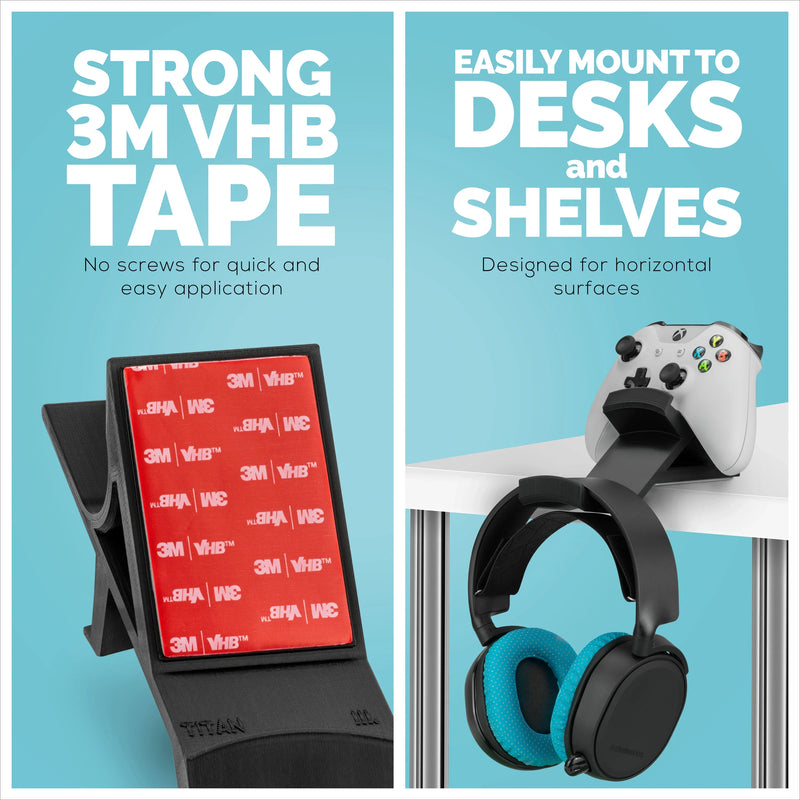 Our Universal Desktop Game Controller & Headphone hanger tabletop mount comes with 3M VHBTM tape pre-fitted and can be installed almost on any flat table/desk top anywhere. GoPro trusts VHB to secure their cameras during extreme activities, so you can be assured it won’t let you, or your controllers down. Max Weight Limit: 1.5kg / 3.3lbs.